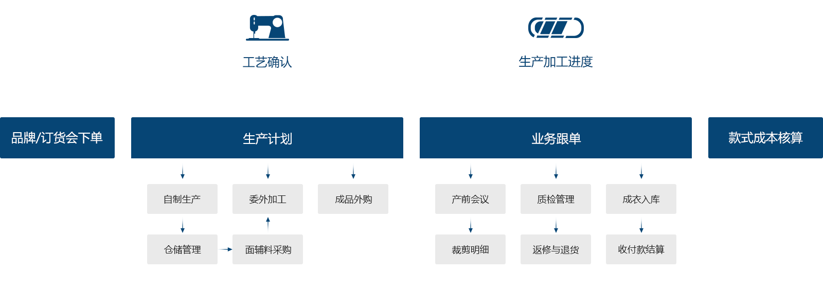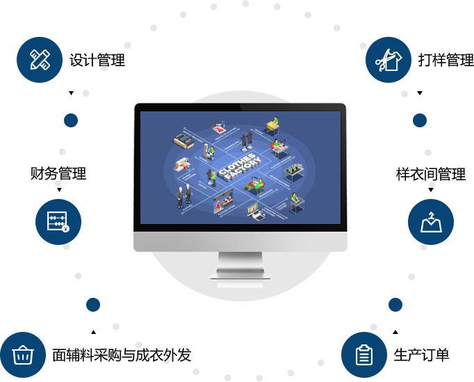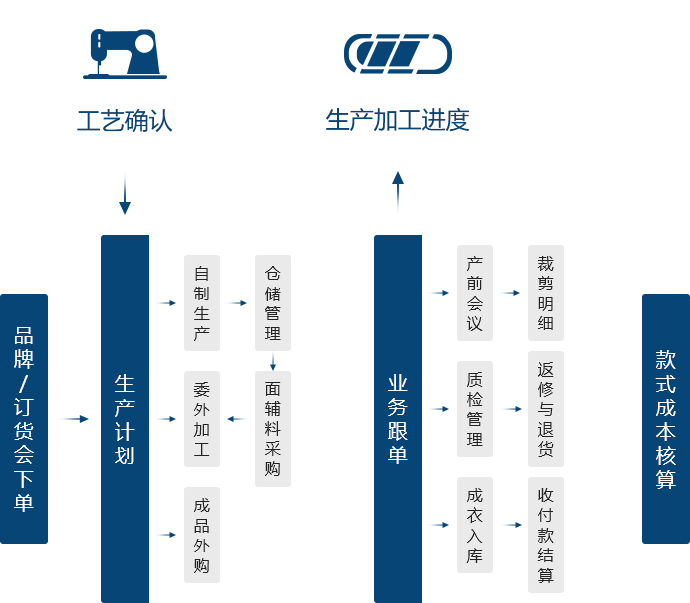 設(shè)計(jì)研發(fā)、供應(yīng)鏈、生產(chǎn)與外發(fā)無縫集成,支持 精細(xì)化生產(chǎn)與零售以及財(cái)務(wù)ERP對(duì)接